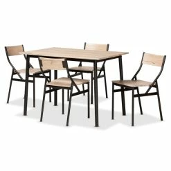 Buy ๐ฅ Baxton Studio Carmen Modern And Contemporary Metal And Wood 5-Piece Dining Set-Oak ๐งจ