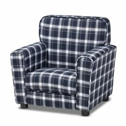 Discount 🤩 Baxton Studio Talma Modern Blue And White Plaid Fabric Upholstered Kids Armchair ❤️