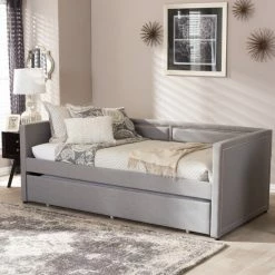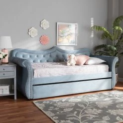 Coupon 🔥 Baxton Studio Abbie Traditional And Transitional Upholstered Daybed With Trundle Blue 😉