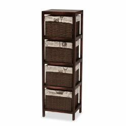 Deals ๐งจ Baxton Studio Bosley French Inspired Wood 4-Willow Basket Storage Unit-Walnut Brown ๐