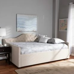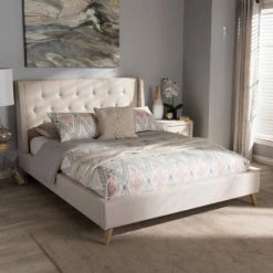 Brand new ๐ฅฐ Contemporary Fabric Bed By Baxton Studio Beige โ๏ธ