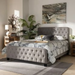 Brand new ๐ฏ Baxton Studio Morgan Modern Transitional Fabric Upholstered Panel Bed Grey โค๏ธ