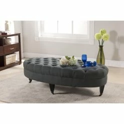Deals 🛒 Baxton Studio Powell Glam And Luxe Velvet Fabric And Gold PU Leather Storage Ottoman Grey 🛒