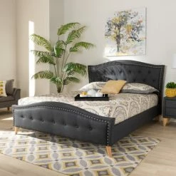 Deals ❤️ Baxton Studio Contemporary Fabric Platform Bed Charcoal 🌟