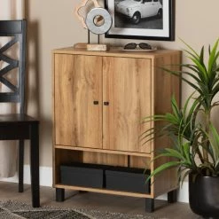 Hot Sale ✨ Baxton Studio Rossin Modern 2-Door Entryway 👟 Shoe Storage Cabinet With Bottom Shelf Oak 🥰