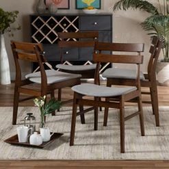 New ๐ Baxton Studio Rika Mid-Century Modern Transitional 5-Piece Dining Set Light Grey โ๏ธ