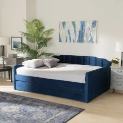 Cheap ๐ฅ Baxton Studio Raphael Modern Velvet Fabric Upholstered Daybed With Trundle Navy ๐