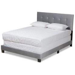 Hot Sale โ Baxton Studio Tamira Modern Glam Velvet Fabric Upholstered Panel Bed Grey โ๏ธ