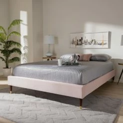 Outlet ๐งจ Baxton Studio Fabric Glam Platform Bed Frame With Goldtone Leg Tips Blue โ