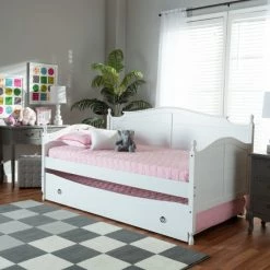 Deals ⭐ Baxton Studio Alya Classic Traditional Twin Daybed With Roll-Out Trundle Bed White 🔔