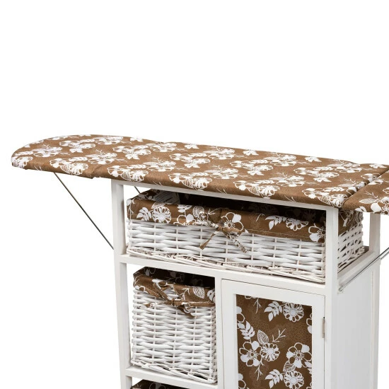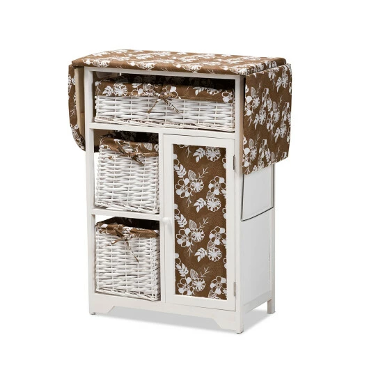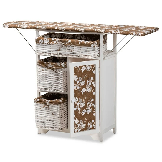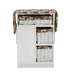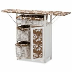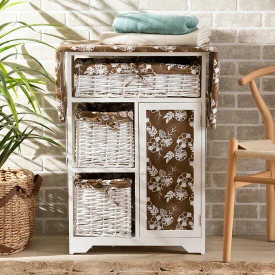 Β Featuring a stunning design with flexible convenience, the Abril storage unit is sure to become a staple for busy homes. Made in China, this versatile piece is comprised of a sturdy wood frame fitted with willow baskets. The expandable top of the Abril is padded with plush foam and upholstered in fabric, serving as a fantastic ironing station to maintain fancy dress. The Abril will arrive fully assembled and features three storage baskets as well as one shelf behind the door for easy organization. A remarkable assistant for busy homes, the Abril storage unit is a fantastic addition to any space…