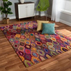 Accent your space with the expressive design of the Addis rug. Handwoven in India, this rug is comprised of recycled fabric. The brilliant blend of colors on display adds visual interest to any room while encouraging a casual atmosphere. An exquisite gem-like pattern adds texture and depth while highlighting the vibrant hues of the Addis. With its astonishing personality, the Addis rug transforms the feel of any space. Bringing comfort and style to any dining experience, the Katya bar stool is an easy addition to the modern home..