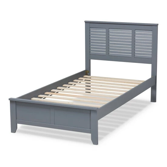 Create a charming beach-inspired retreat in your bedroom with the Adela bed. Crafted from wood, the Adela displays a modern Grey finish. The shutter design on the headboard lends a relaxed feel, while inset detailing at the footboard adds a touch of refinement.