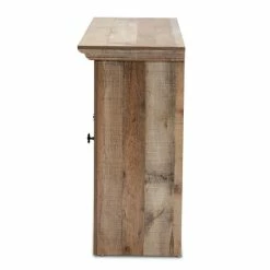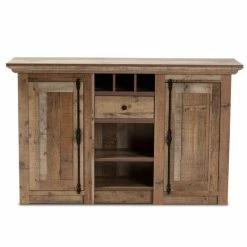 Cultivate a charming farmhouse aesthetic in your dining space with the Albert sideboard. Made in Malaysia, this wooden sideboard features a rustic finish, giving the piece a cozy, old-world feel. Two open shelves and four concealed shelves provide ample space to store plates and glasses. The Albert is also equipped with one drawer for utensil storage, as well as three cubbies for wine bottle storage. Long, ornate black metal handles add a chic industrial touch. Requiring assembly, the Albert sideboard lends style and utility to any dining space..