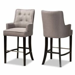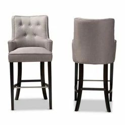 With a visually stunning design, the Aldon bar stool is a sleek addition to any home bar or lounge area. Made in Malaysia, the Aldon is comprised of a wood frame displaying a rich dark brown finish that is complemented by the light fabric upholstery. Button tufting lends a chic look, while plush foam padding ensures comfort. Requiring assembly, the front footrest is fitted with a silver-tone metal bar for convenient support in striking design. Miniature armrests provide an elegant touch, making the Aldon bar stool an extraordinarily stylish and comfortable addition to any space…