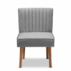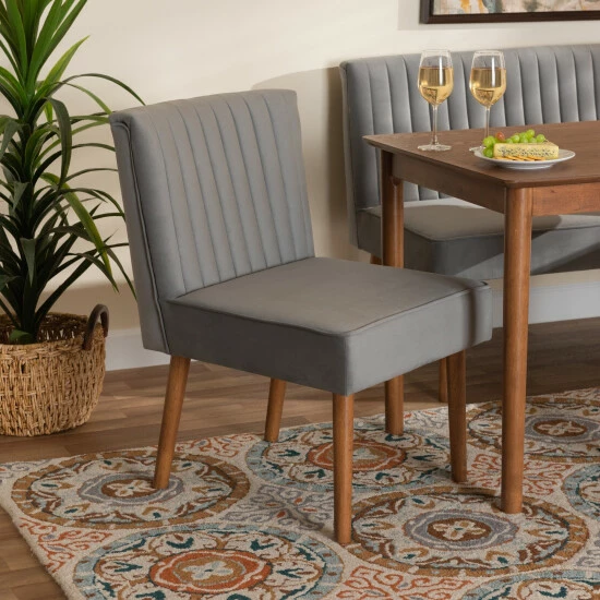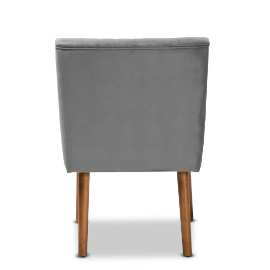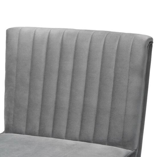 Made in Malaysia, this chair is comprised of a solid wood frame padded with foam and upholstered in luxurious velvet fabric. The channel tufted backrest creates an exquisite geometric display that highlights the rich tones of the velvet. The Alvis requires assembly and features angled legs for excellent stability and support. A wonderful accent piece for the modern dining room, the Alvis dining chair is sure to leave and impression. .