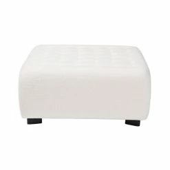 A genuine boon of contemporary design, the alluring Athena ottoman cultivates tranquil leisure. Made in China, this stunning piece consists of a solid wood frame padded with layers of foam and upholstered in plush boucle fabric. Its grid-tufted cushion exudes geometric appeal and sculpts the sumptuous boucle to form a remarkably cozy yet supportive embrace. The Athena requires assembly and utilizes minimalist feet for excellent stability and support while emphasizing the lavish design of the piece. A distinguished yet easygoing addition, the Athena ottoman is sure to become a cherished accessory in any arrangement.