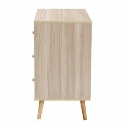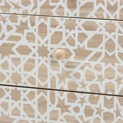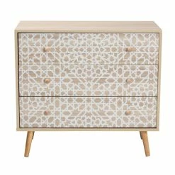 Galvanize the visual appeal of your space with the vibrant and handy Beau storage cabinet. Made in China, this stunning piece consists of sturdy wood. Three wide drawers provide space to organize your belongings while geometric artwork creates an eye-catching display. The Beau requires assembly and features angled legs for excellent stability and support inspired by mid-century design. Round drawer knobs lend a subtle touch, making the Beau storage cabinet a lively yet efficient addition to any space.