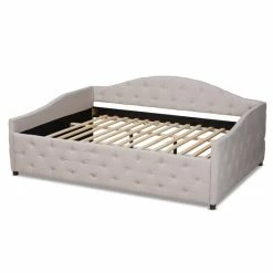 The serene design of the Becker daybed brings elegant comfort to any bedroom space. Made in Malaysia, the Becker is comprised of a sturdy wood frame padded with foam and upholstered in smooth fabric. Button tufting adds texture and depth while creating a cool, contemporary look from any angle. Requiring assembly, the Becker utilizes wood slats for mattress support, which eliminate the need for a box spring. Smooth edges create a pleasant silhouette, making the Becker daybed a tranquil addition to the modern bedroom…
