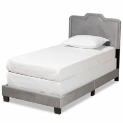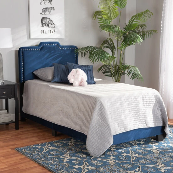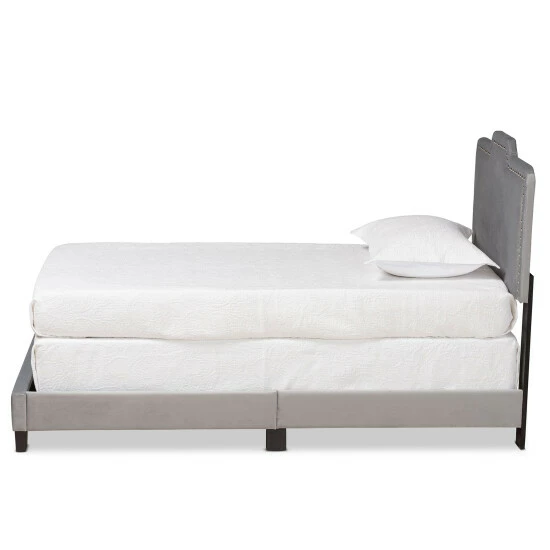 Steeped in glamorous design, the Benjen bed stands out with marvelous comfort and style. Made in Malaysia, this wood bed is padded with layers of soft foam and upholstered in smooth velvet fabric. Its broad headboard provides excellent back support, while silver finished metal nailheads add contemporary flair and accentuate the regal silhouette. Requiring assembly, the Benjen needs a box spring to function properly. Forming an extravagant display of comfort, the Benjen bed is a terrific addition to the modern bedroom…