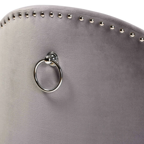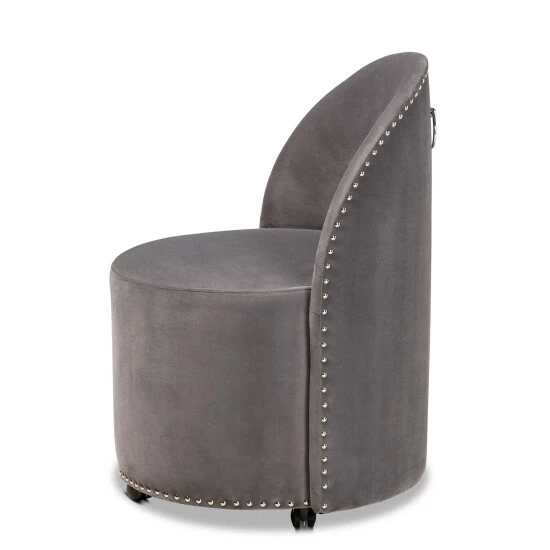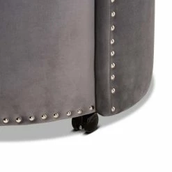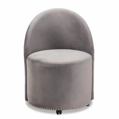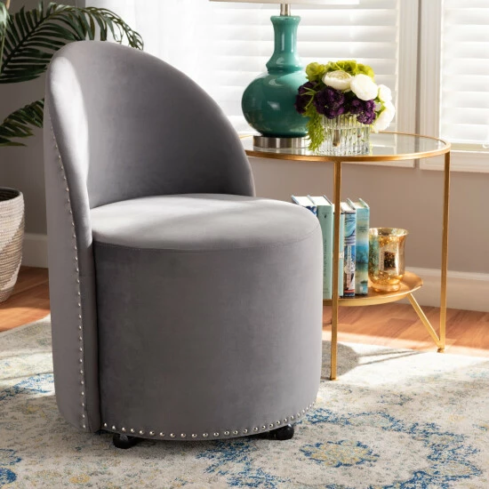 Enhance the feel of any space with the cozy and eye catching Bethel accent chair. Made in China, the Bethel is comprised of a sturdy wood frame padded with a layer of soft foam and upholstered in smooth velvet fabric. The curved backrest provides plush comfort while showcasing modern minimalist design. Black caster wheels lend swift mobility. The Bethel requires assembly and is adorned with a silver metal studs for a touch of contemporary glamour. Stylish yet relaxed, the Bethel accent chair stands out in any space..