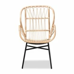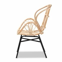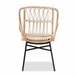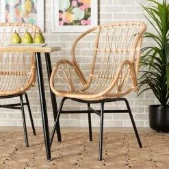 The exotic design of the Caelia dining chair bestows a truly unique atmosphere to your space. Made in Indonesia, this chair is comprised of a solid metal base topped with natural rattan. Woven accents within the backrest form a smooth embrace, while round armrests provide added comfort. The Caelia requires assembly and utilizes angled legs connected by a crisscross base for excellent stability and support. Whether used to craft a stunning dining arrangement or as an accent piece in common areas, the Caelia dining chair transforms the feel of any space. . . .
