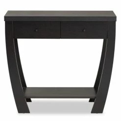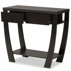 Reshape the layout of your home with the sophisticated Capote console table. Made in Malaysia, this table is crafted from sturdy wood featuring a rich dark brown finish that adds a modern touch to your interior. Two drawers offer storage for keys and mail, while one shelf and the tabletop create an eye-catching display for decorative items. Requiring assembly, the Capote utilizes curved legs for superb stability in expressive design. Elegant and versatile in its design, the Capote console table is a handy addition to the modern home.. Ideal for smaller dining rooms and nooks, the Sanford dining nook set rejuvenates any space.