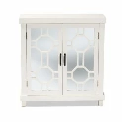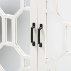 Bring chic organization to your dining room with the fantastic design of the Carlena sideboard. Made in Malaysia, this sideboard is constructed from wood featuring a brilliant white finish that adds a touch of light to any space. Two large shelves behind the doors offer ample storage space for cookware and appliances. Requiring assembly, the doors of the Carlena showcase a geometric design embedded with mirrors for a sleek, contemporary display. A beautiful culmination of convenience and style, the Carlena sideboard elevates the efficiency of any dining room…