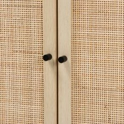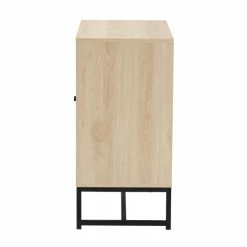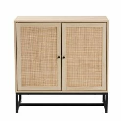 Saturated in the style of mid-century design, the Caterina cabinet caters for modern needs. Made in China, this exquisite piece consists of a solid metal frame fitted with wood. Two wide shelves behind the doors provide discreet storage space to organize and declutter busy areas of your home. The Caterina requires assembly and features woven natural rattan embellishments for an extra dose of retro flair. A handy addition that carries on the charm of traditional design, the Caterina cabinet elevates any arrangement.