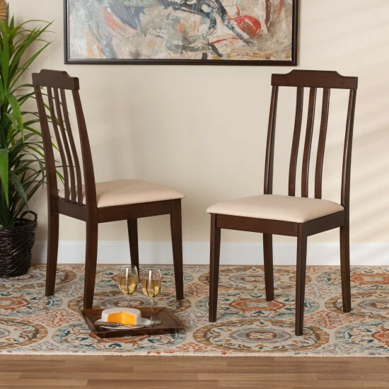 Made in Malaysia, this lovely piece consists of a solid wood frame fitted with a foam-padded cushion upholstered in smooth fabric. The tall backrest gently curves to offer smooth support while the openwork design enables light to flow naturally throughout the room. The Clarissa requires assembly and features angled legs for excellent stability and support. A superb refinement on classic design, the Clarissa dining chair enhances any dining arrangement. .