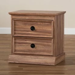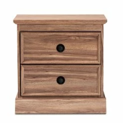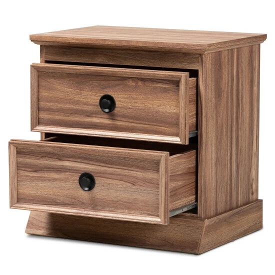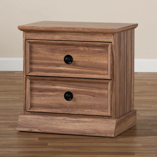 Natural wood tones and ample storage space make the Ryker nightstand an effortless addition to any bedroom. This engineered wood dresser features two spacious drawers to store all the bedside essentials. Each drawer is fitted with metal glides for smooth movement.