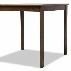 A clean design and neutral color palette make the Lovy dining set an effortless addition to any space. Constructed from solid rubberwood and engineered wood in a dark walnut finish, this dining set includes one table and four chairs. The table features a classic square top, ideal for playing cards or having a casual meal.