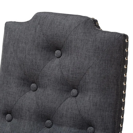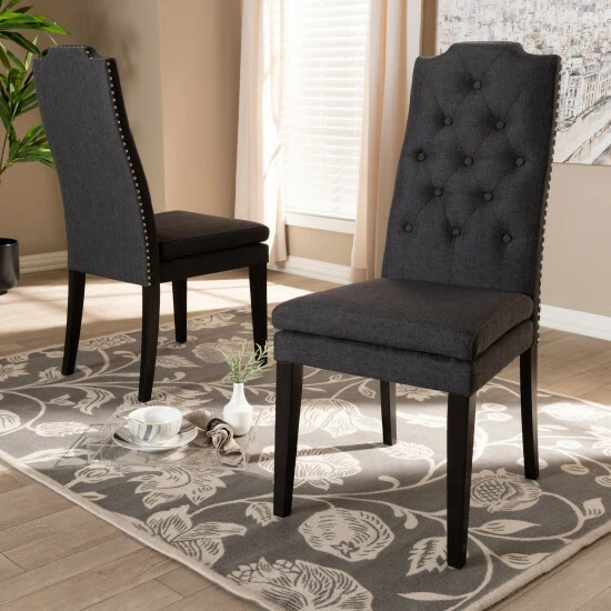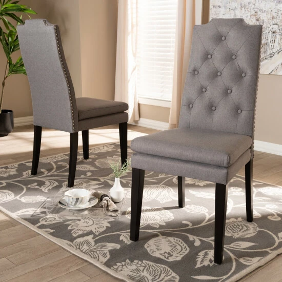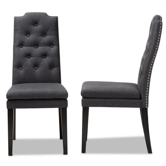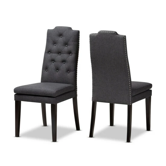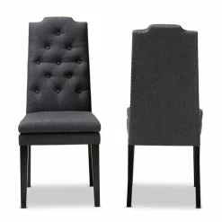 Refresh your dining room with the elegant Dylin dining chair. This wood chair is upholstered in a soft, durable fabric that complements the dark brown wood finish. The wide seat is fitted with two foam-filled cushions to provide the utmost comfort during long, leisurely dinners.