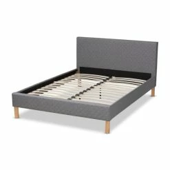 Create a cozy sanctuary in your bedroom with the Aneta bed. Built with a durable wood frame, the Aneta bed is upholstered in a soft, resilient grey polyester fabric. The upholstery features diamond patterned stitching reminiscent of a traditional quilt, adding both charm and texture.