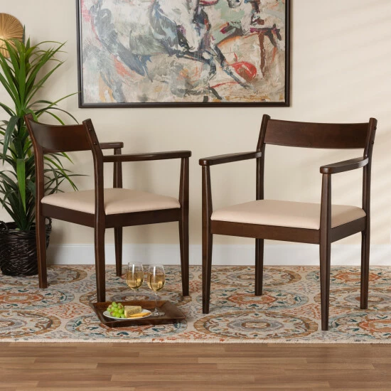 Made in Malaysia, this stunning piece is comprised of a solid wood frame fitted with a foam-padded cushion upholstered in smooth fabric. The curved backrest provides superb back support during meals, while ergonomic armrests offer enhanced comfort. The Coretta dining chair requires assembly and features straight legs for excellent stability in a distinct silhouette. Blending timeless elegance with modern standards, the Coretta dining chair redefines any dining space. .