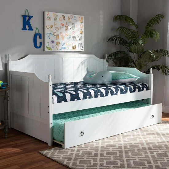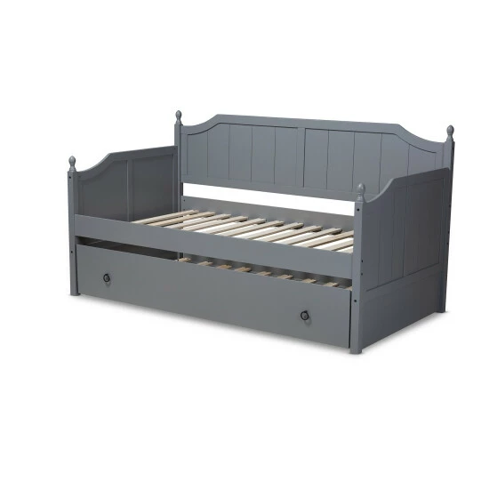 Naps and reading marathons abound with the cozy Millie daybed. This versatile piece is fitted with a pull-out trundle to provide convenient accommodation for overnight guests. Its sturdy wood construction ensures durability, while its classic grey finish makes it easy to coordinate with any existing color palette.