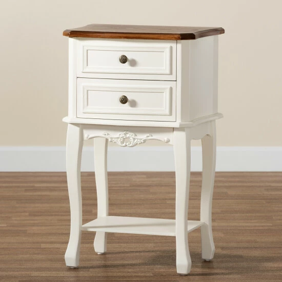 Outfitted with two handy drawers, this versatile and charming piece offers plenty of room for living room necessities.