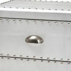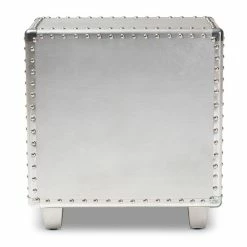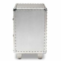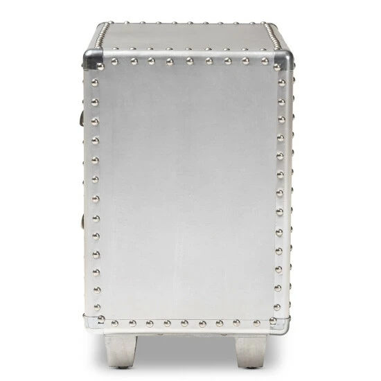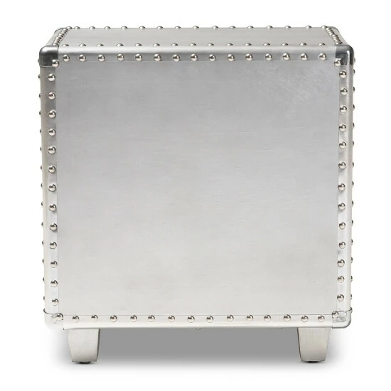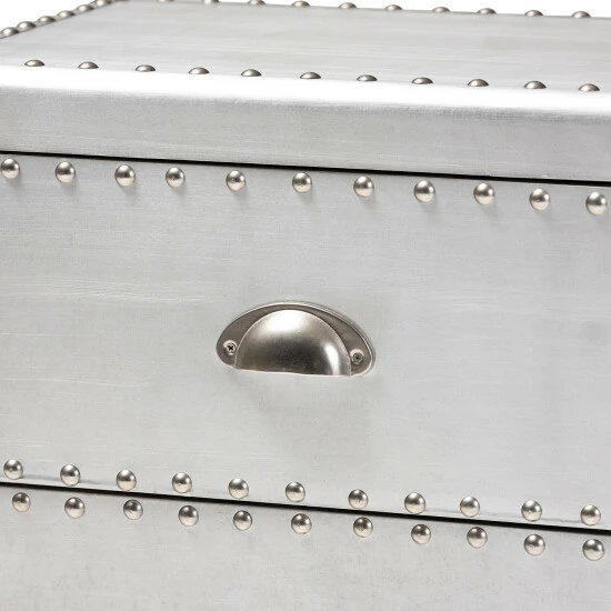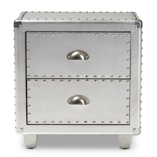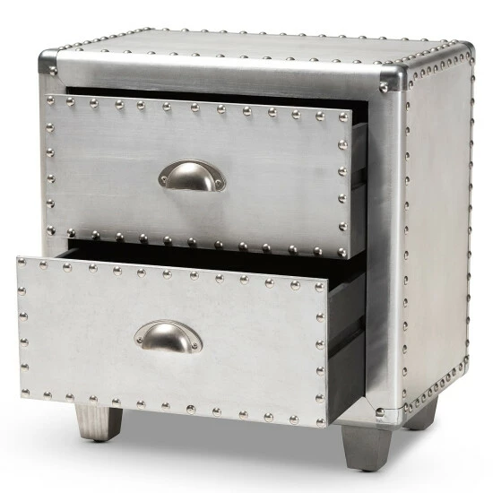 Bring chic French industrial style into your living room with the Davet end table. Constructed from silver metal, the Davet features cool rivet detailing along its edges. Two drawers provide space to keep items organized and out of sight.