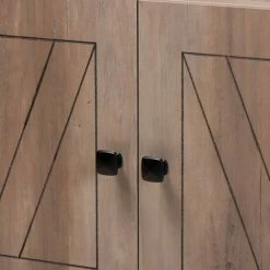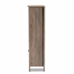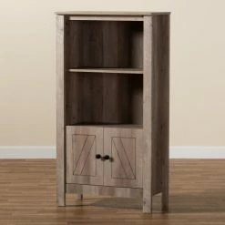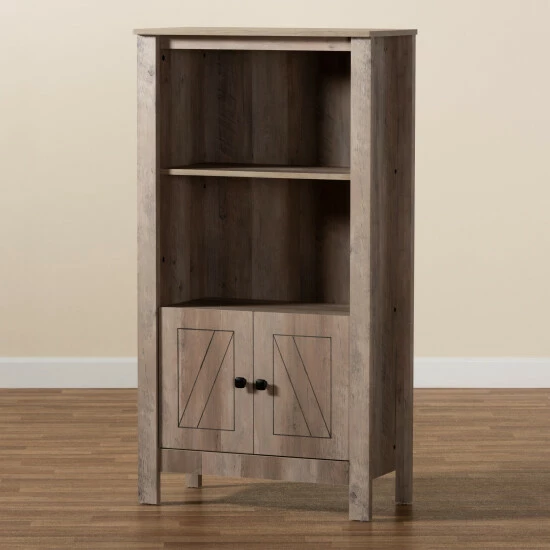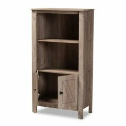 Add the charming crisp lines of the Derek bookcase to your space for an elegant solution to your storage needs. Made in Malaysia, the Derek is comprised of sturdy wood showcasing a natural oak brown finish. Two external shelves create an excellent display for books and decorations, while one internal shelf supplies concealed storage. Requiring assembly, the doors feature an exquisitely carved design, as well as black finished square metal knobs for added visual appeal. An excellent pedestal for your collection, the Derek bookcase noticeably upgrades any space…