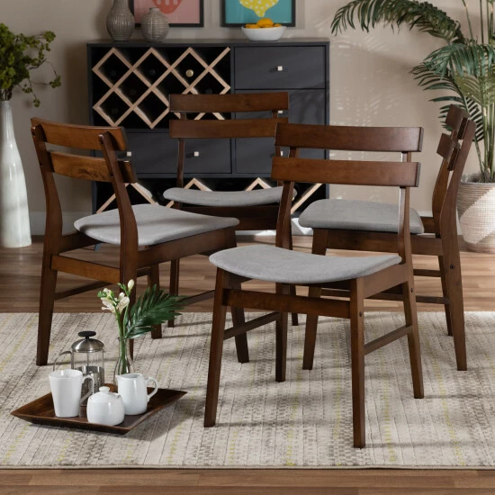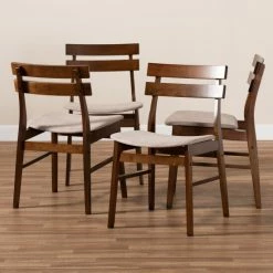 A clean, modern form is paired with comfortable seating in the Devlin dining chair. Made in Malaysia, the Devlin is finished in a warm walnut brown that lends any space a relaxed feel. A slatted, angled back provides solid support in contemporary style. Each foam-padded chair is upholstered in an elegant light-tone fabric and requires assembly. With its compact size, the Devlin dining chair is an easy addition to dining rooms and nooks with limited space…