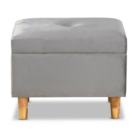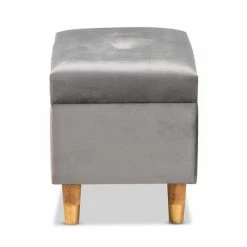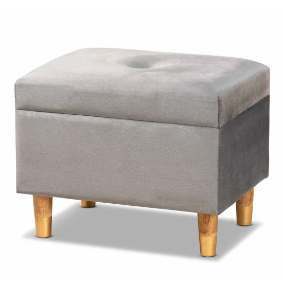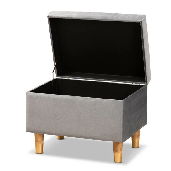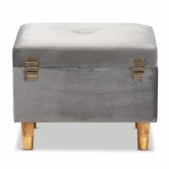 Accent your space with the glamorous seating and handy storage of the Elias ottoman. Made in China, the Elias is comprised of a sturdy wood frame padded with foam and upholstered in smooth velvet fabric. Its lift up top reveals storage space for extra blankets and linens. Requiring assembly, the Elias sits on tapered, oak finished wood legs for a chic, modern look. Button tufting and antique brass finished metal latches lend an elegant touch, making the Elias ottoman a distinctive addition to any space…