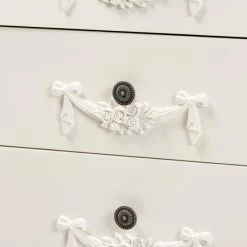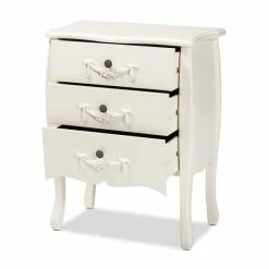 Uplift the character of busy rooms with the timeless style of the Eliya storage cabinet. Made in China, this exquisite piece is comprised of a solid wood frame embellished with metal drawer knobs. Three drawers provide ample storage space to accommodate the needs of any arrangement. The Eliya will arrive fully assembled and features cabriole legs for excellent stability and support in elegant style. Floral moldings add a graceful touch, making the Eliya storage cabinet an enchanting addition to any space.
