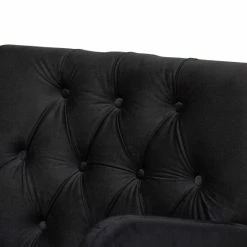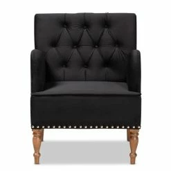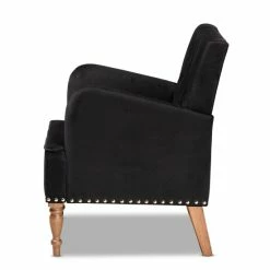 Lounge in glamorous style with the elegant design of the Eri armchair. Made in Malaysia, the Eri is comprised of a sturdy wood frame padded with soft foam and upholstered in sumptuous velvet fabric. Chic button tufting creates plush texture, while the silver nailhead trim outlines the chair with modern glamour. Requiring assembly, the Eri is supported by ring turned legs for an added dose of classic charm. Create a lovely living room or office space with the superb style and comfort of the Eri armchair…