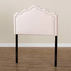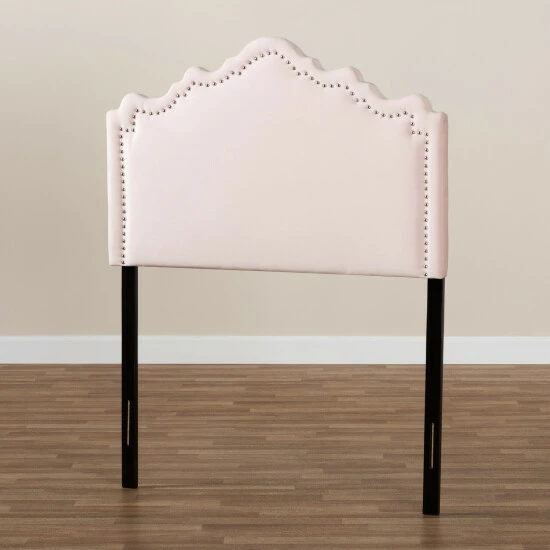 Transform your bedroom into a glamorous oasis with the Nadeen headboard. Constructed from MDF wood and LVL, the Avignon is upholstered in a soft, foam filled velvet polyester fabric that provides ample comfort for you to lean against. The headboard features a curvaceous silhouette highlighted by glamorous silver nailheads, displaying a modern elegance.