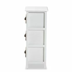 Add a handy accent of modern design to your space with the Fanning storage unit. Made in China, this multipurpose piece comprised of a sturdy wood frame adorned with metal accents. Three drawers add convenient storage to your home while wood embellishments create visual texture and depth. Requiring assembly, the Fanning features smooth metal drawer handles for a sleek, industrial touch. The streamlined frame allows the piece to blend well with any interior layout, making the Fanning storage unit a worthwhile addition to the modern home…