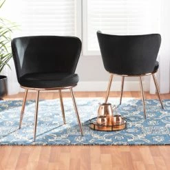 Craft a dazzling dining room layout with the lavish Farah dining chair. Made in China, this chair is comprised of a strong metal and wood frame padded with plush foam and upholstered in sumptuous velvet fabric. Versatile in design, its flared backrest and rounded seat create a lively display while ensuring a comfortable dining experience. Requiring assembly, the Farah utilizes angled, rose gold finished metal legs that provide stable support and exude modern glamour. Visually stunning yet comfortable, the Farah dining chair elevates every meal into a luxurious occasion…