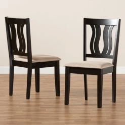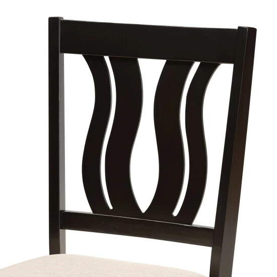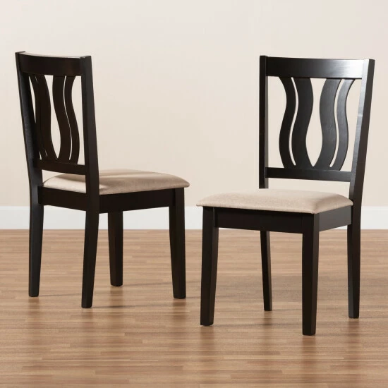 Featuring a unique, symmetrical design, the Fenton dining chair adds elegance to any dining space. Made in Malaysia, the Fenton is comprised of a sturdy wood frame showcasing a rich dark brown finish. The backrest features a unique, geometric design for added visual appeal. The Fenton requires assembly and is fitted with a foam padded seat upholstered in smooth fabric for superb comfort. Straight legs add a touch of sleek, contemporary style, characterizing the Fenton dining chair as an exceptional addition to the modern home. ..