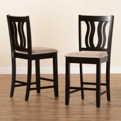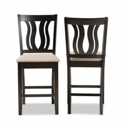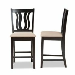 Featuring a unique, symmetrical design, the Fenton counter stool adds elegance to any dining space. Made in Malaysia, this stool is comprised of a sturdy wood frame showcasing a rich dark brown finish. The Fenton is padded with soft foam and upholstered in smooth fabric for superb comfort. Requiring assembly, the backrest showcases a striking geometric design for added visual appeal. An ideal combination of comfort and contemporary style, the Fenton counter stool elevates any dining experience…