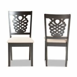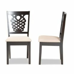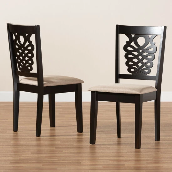 Imbue your dining space with the elegance of the finely crafted Gervais dining chair. Made in Malaysia, the Gervais is comprised of a sturdy wood frame showcasing a rich dark brown finish. The backrest features a unique, intricate cut-out design for enhanced visual appeal. Requiring assembly, the Gervais is fitted with a foam padded seat upholstered in smooth fabric for superb comfort. Straight legs add a touch of sleek, contemporary style, making the Gervais dining chair an excellent addition to the modern home…