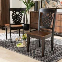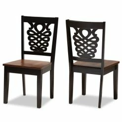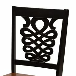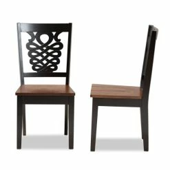 Imbue your dining space with the elegance of the finely crafted Gervais dining chair. Made in Malaysia, the Gervais is comprised of a sturdy wood frame showcasing a rich dark brown finish. The seat is finished in a distinctive walnut brown hue and is scooped for a more casual and comfortable dining experience. Requiring assembly, the backrest showcases a striking geometric design for added visual appeal. Straight legs add a touch of sleek, contemporary style, making the Gervais dining chair an excellent addition to the modern home…